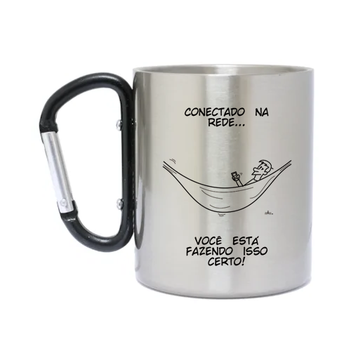 Caneca Inox com Mosquetão Conectado na Rede
